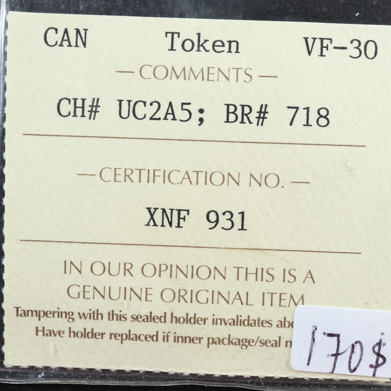 UC-2A5 ICCS VF-30 Halfpenny token Lesslie Upper Canada York Kingston Breton 718 quantity