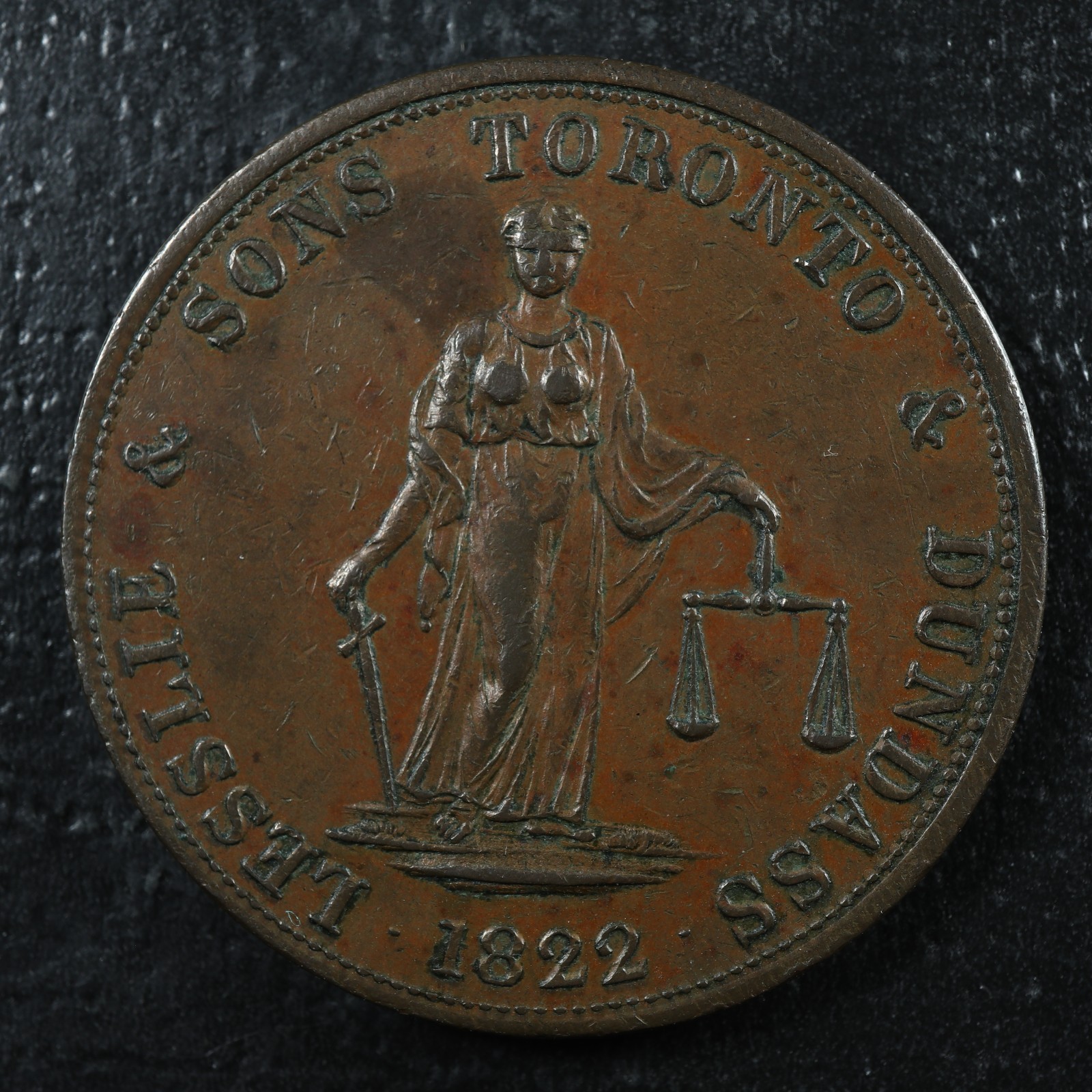 UC-3 2 pence token 1822 Lesslie & sons Upper Canada Ontario Toronto Breton 717