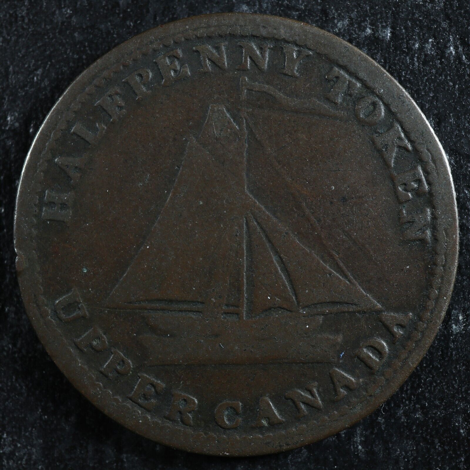 UC-12B2 ICCS EF-45 Halfpenny token 1823 Upper Canada Ontario ship Breton 730