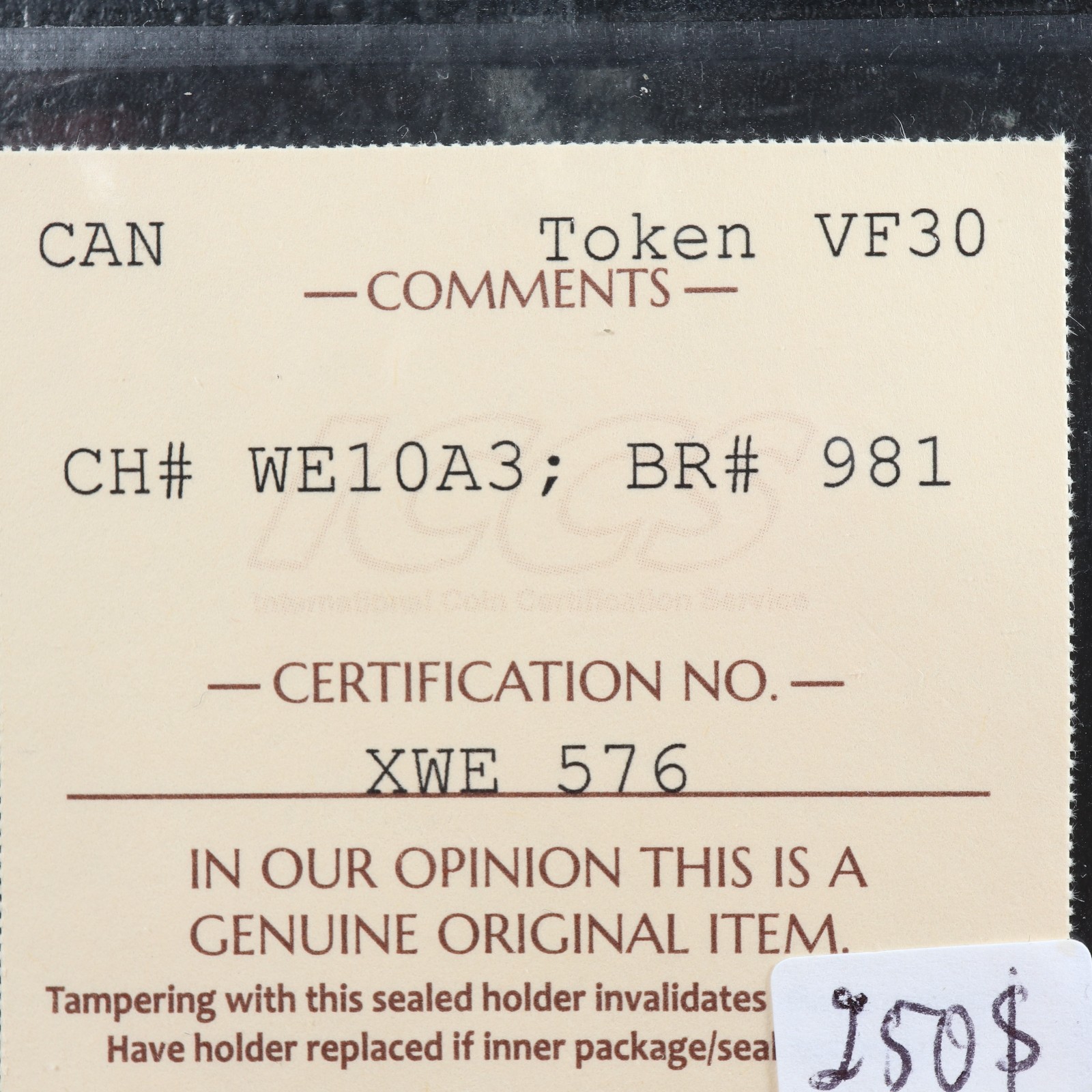WE-4B ICCS EF-40 One penny token Field marshal Wellington Canada Britannia Co 32
