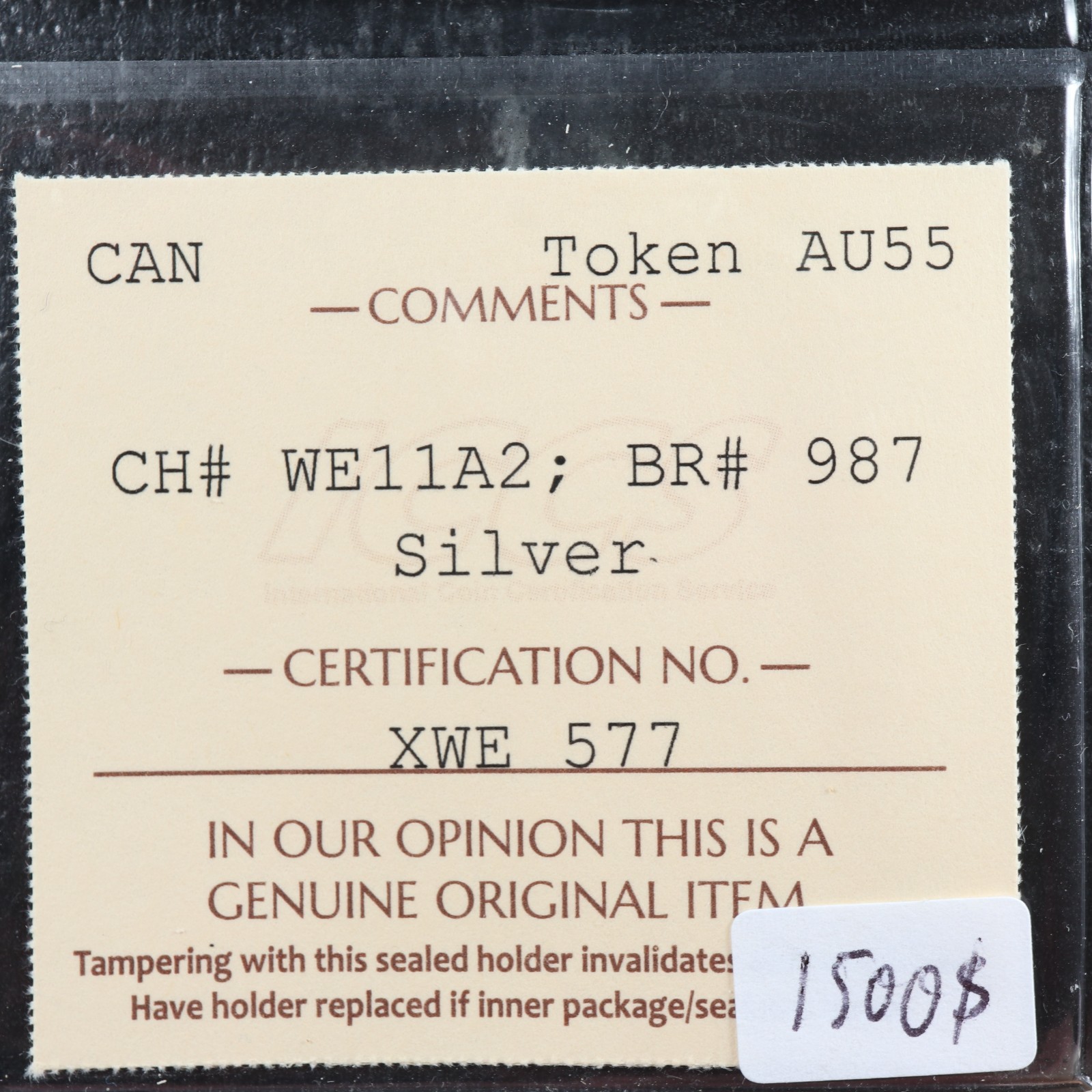 WE-11A2 ICCS AU-55 Silver Halfpenny token Wellington Canada Breton 987