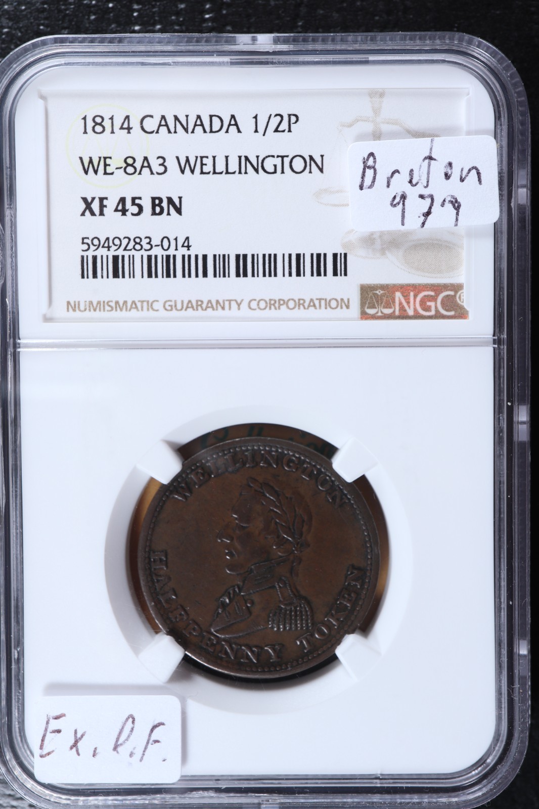 WE-8A3 NGC EF-45 Halfpenny 1814 token Wellington Canada Britannia Breton 979