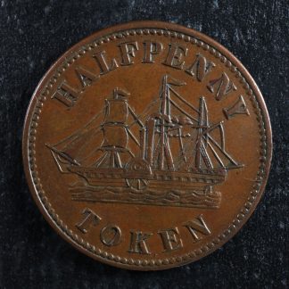 PE-8 Halfpenny token ND (1858) Canada PEI Prince Edward Island Ship Breton 921