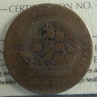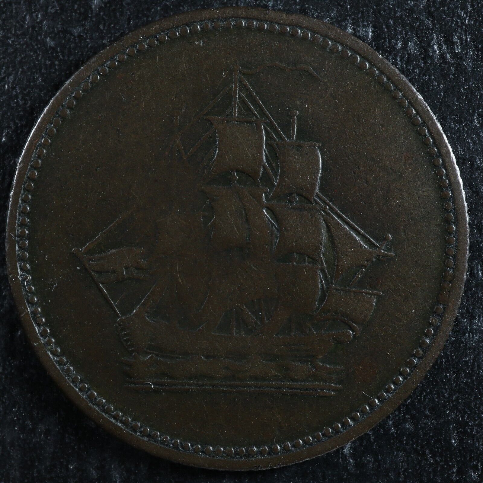 NS-21A2 Halfpenny token 1813 Canada Nova Scotia Ship Breton 965