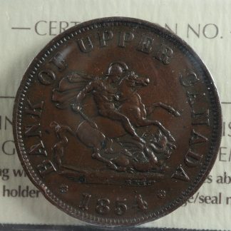 PC-5C2 ICCS EF-40 Halfpenny 1854 token Province of Upper Canada Bank Breton 720