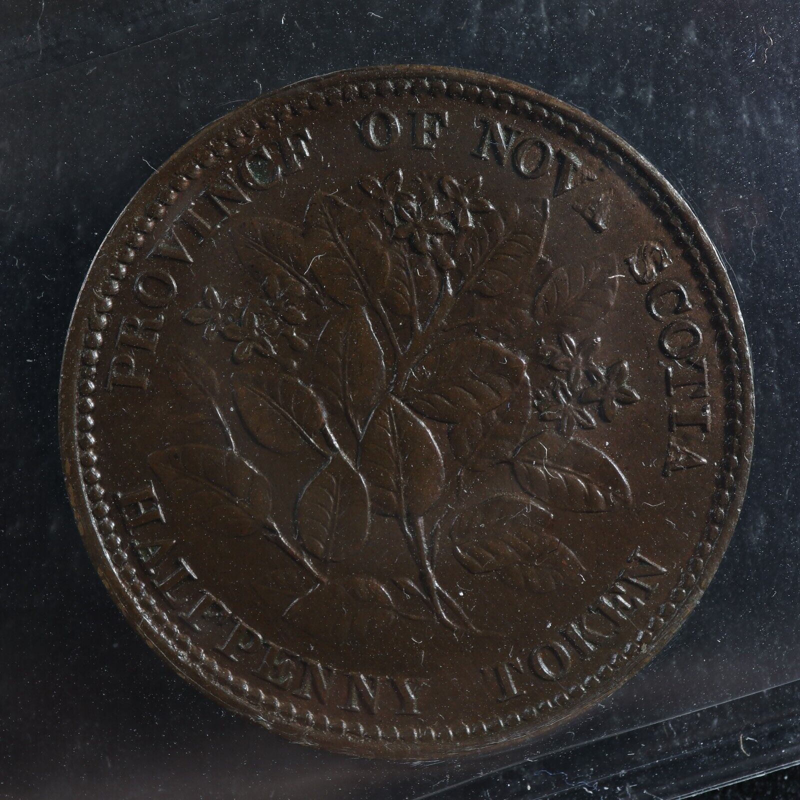 NS-5A1 ICCS AU-50 Halfpenny token 1856 Canada Nova Scotia Mayflower Breton 876