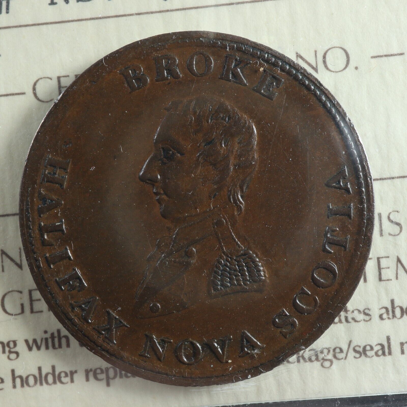 NS-8A1 ICCS VG-8 Halfpenny 1814 token Nova Scotia Canada Ship Breton 880