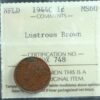 1 cent 1944C Newfoundland ICCS MS-60 Lustrous brown penny King George VI NFLD