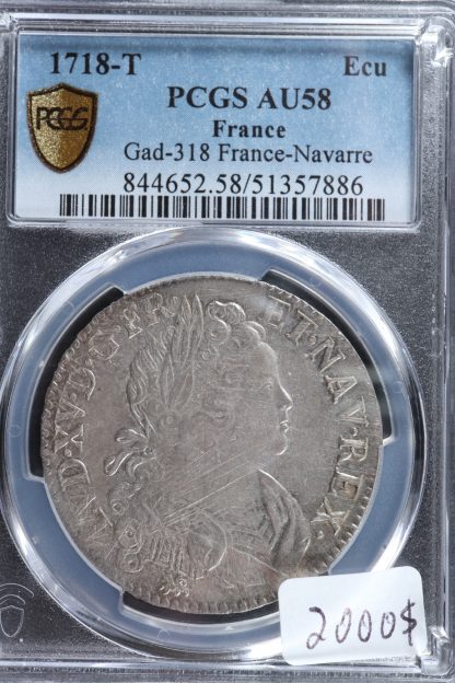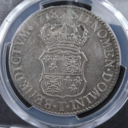 1 écu d’argent de Navarre 1718T Nantes France KM#435.20 PCGS AU-58 silver