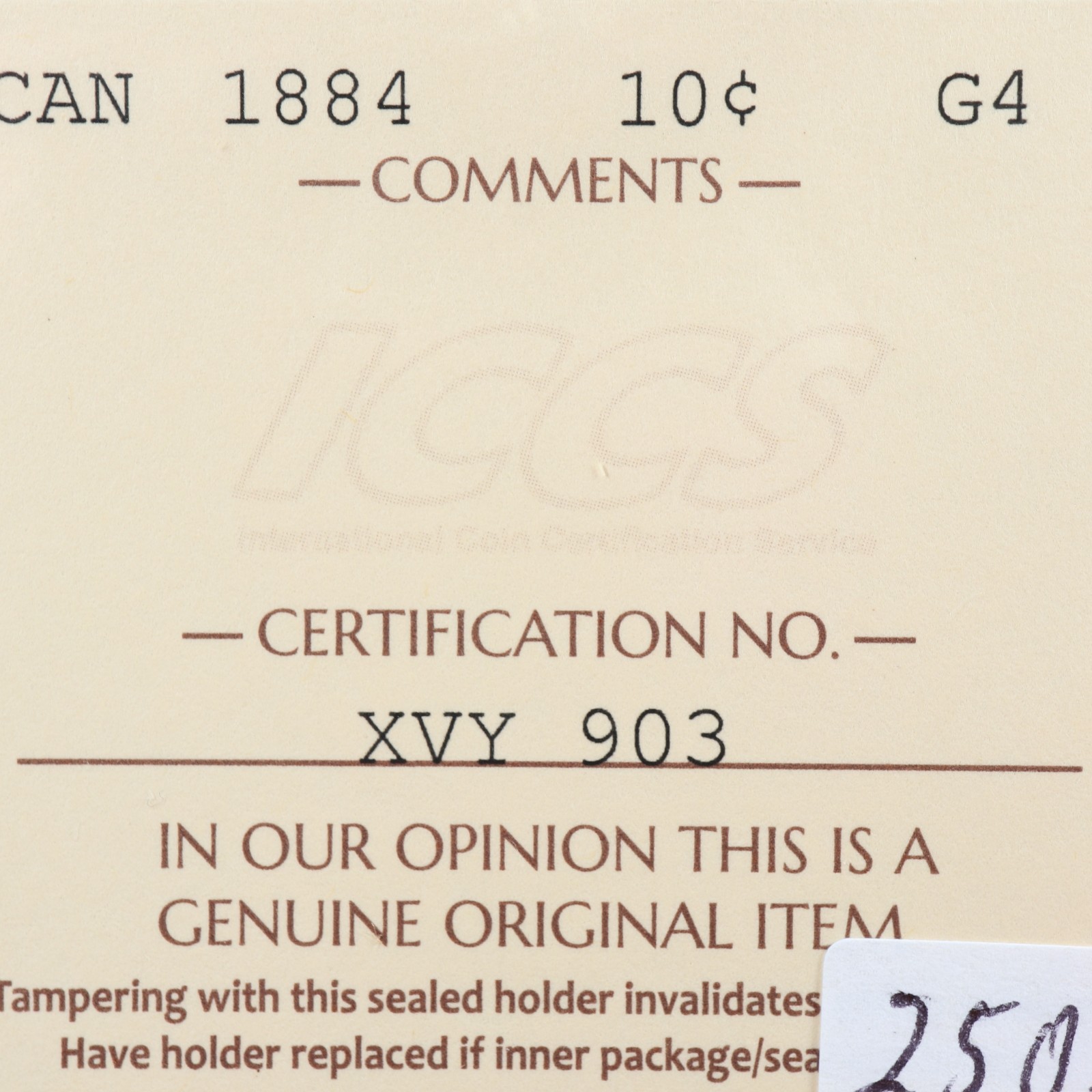 10 cents 1884 Canada ICCS G-4 silver coin Queen Victoria c ¢