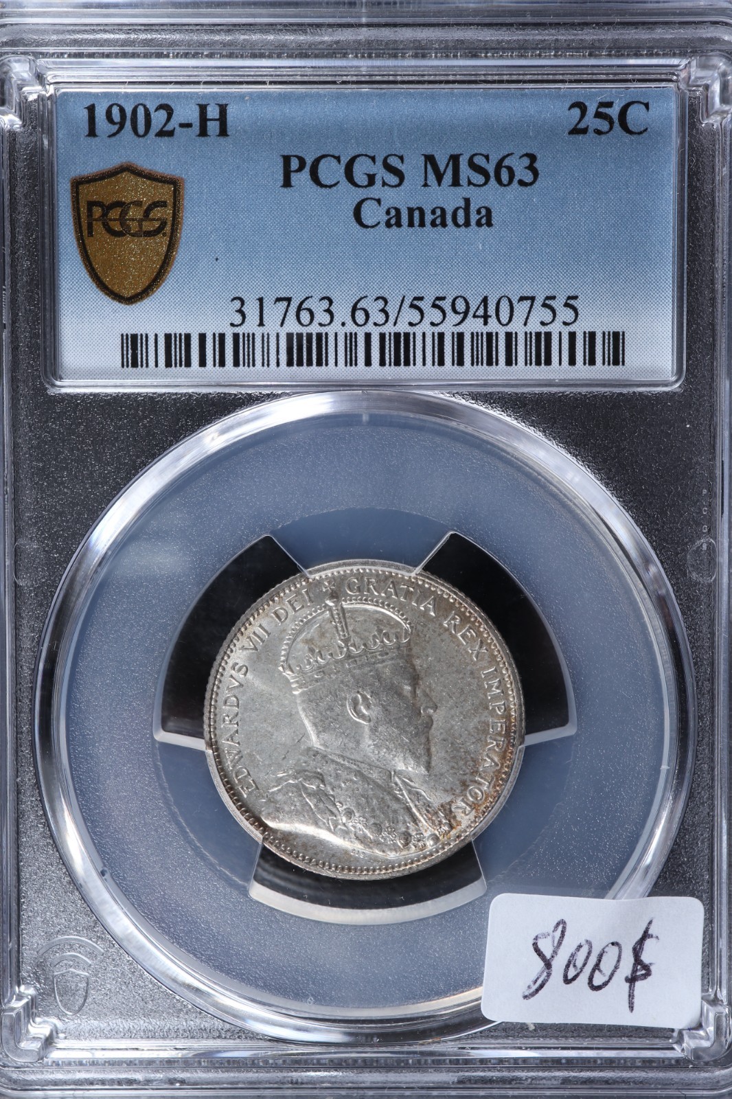 25 cents 1902H PCGS MS-63 Canada silver King Edward VII c ¢ quarter quantity