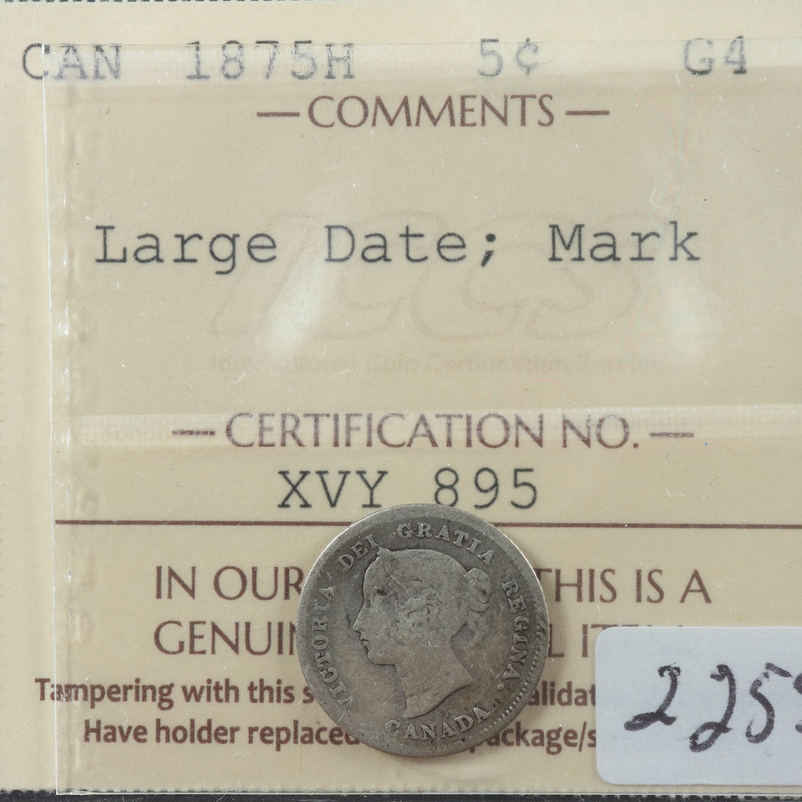 5 cents 1875H LD Canada ICCS G-4 Mark Queen Victoria silver c ¢ Large date quantity