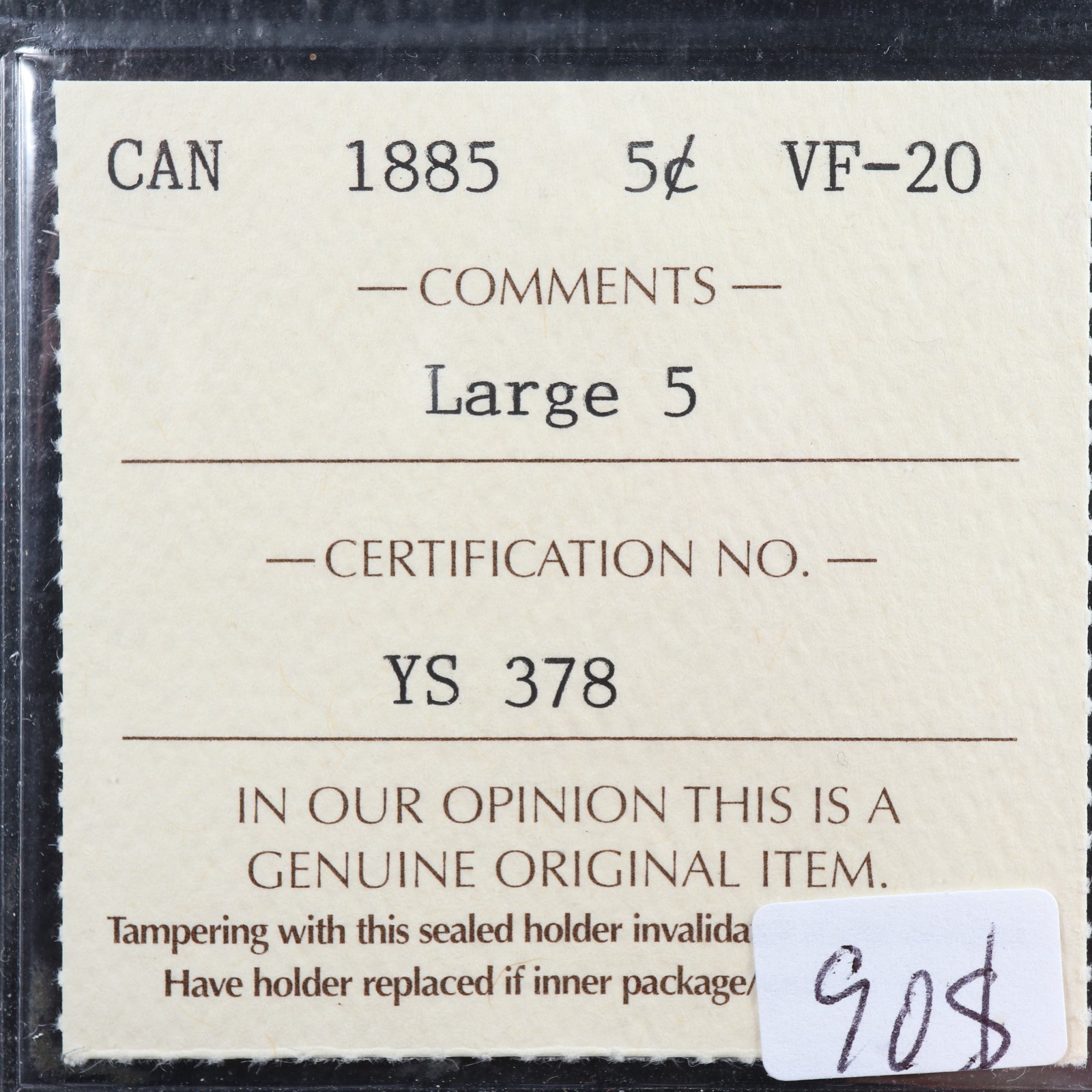 5 cents 1885 Large 5 Canada ICCS VF-20 Queen Victoria silver c ¢ quantity