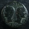Obv.: IMP DIVI F P P, Heads of Agrippa (left) and Augustus (right) back to back Agrippa wearing combined rostral crown and laurel wreath and Augustus is laureate.