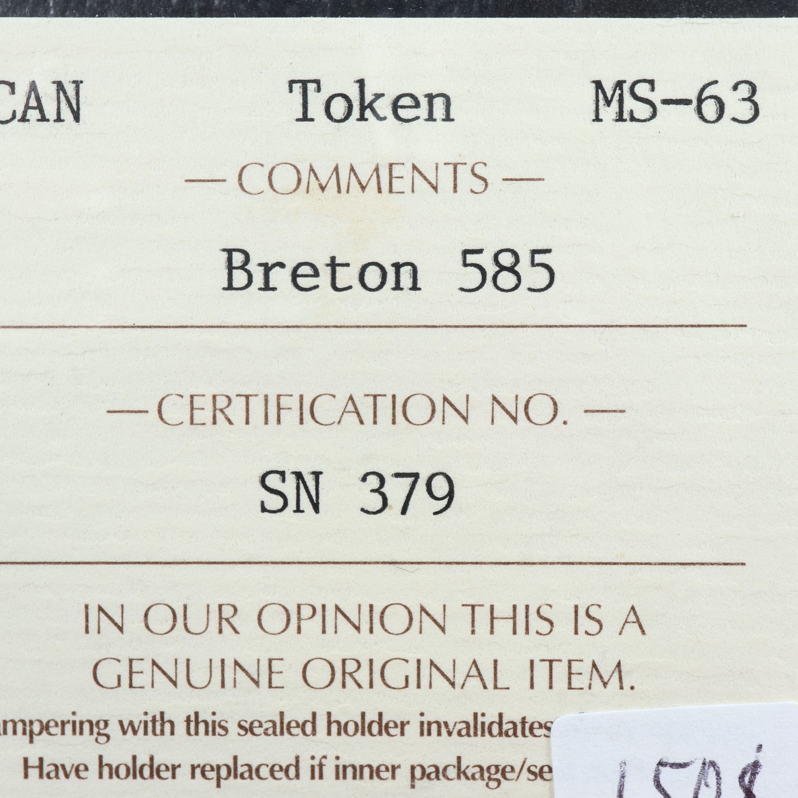 Breton 585 ICCS MS-63 Leroux French book token copper Montreal Canada quantity