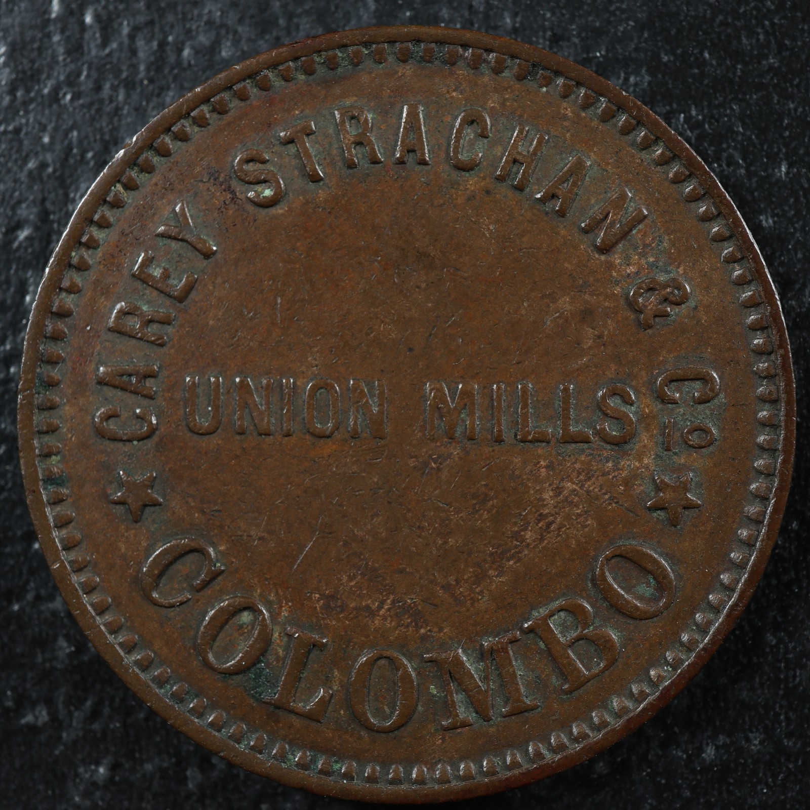 Carey Strachan & Co Union Mills token, Ceylon, Colombo, 1 ND(circa 1873)