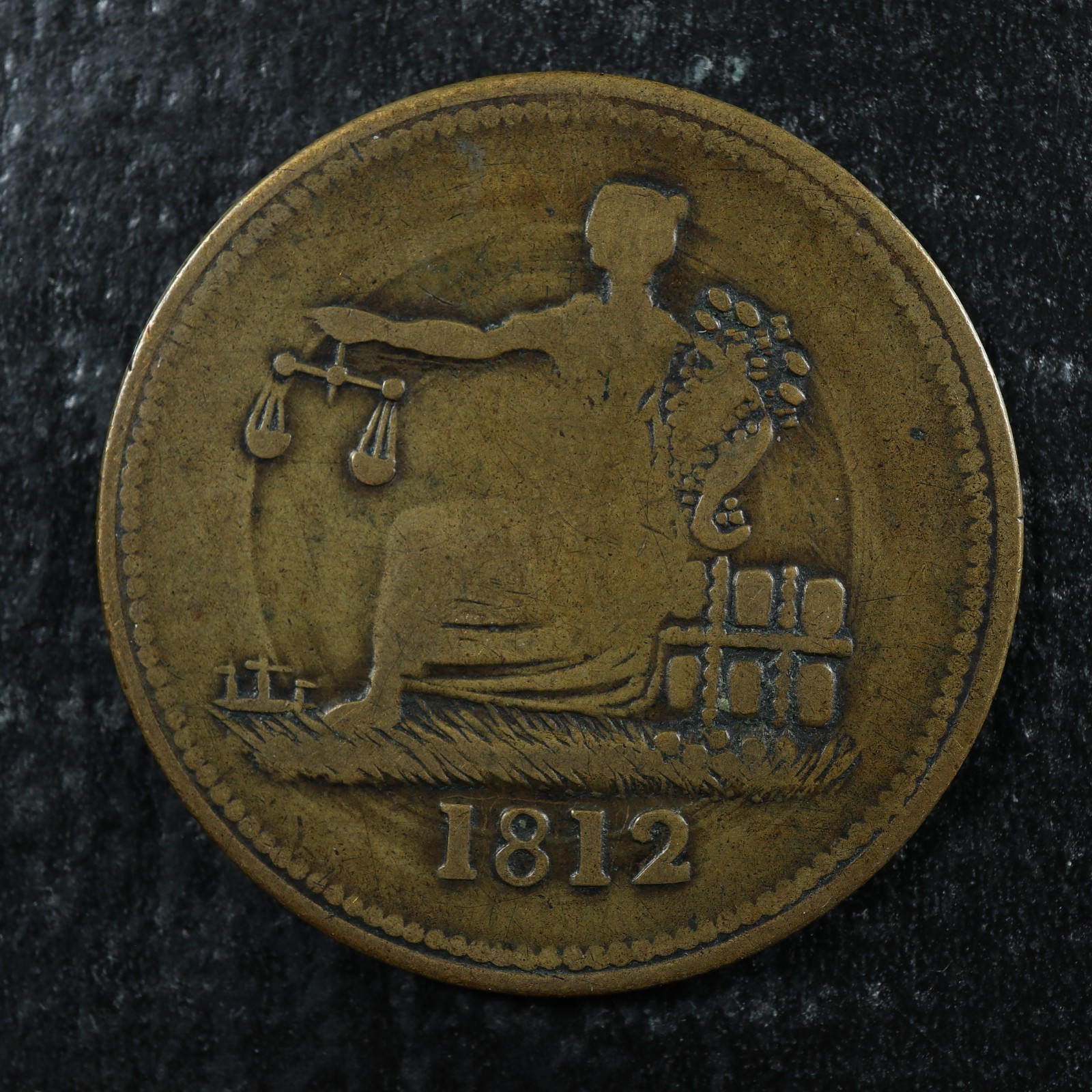 LC-48-1 Halfpenny token 1812 Lower Bas Canada Quebec Tiffin Breton 961