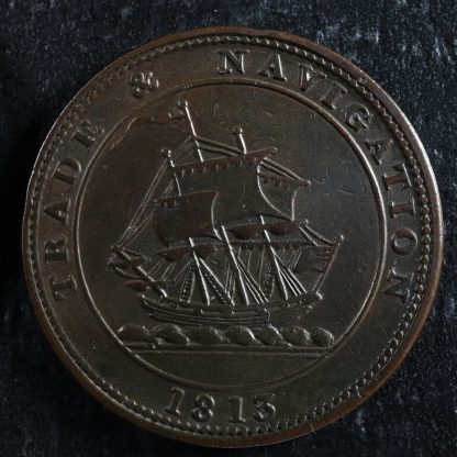 NS-21A2 Halfpenny token 1813 Canada Nova Scotia Ship Breton 965