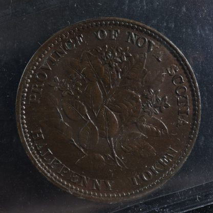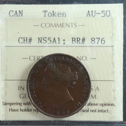 NS-5A1 ICCS AU-50 Halfpenny token 1856 Canada Nova Scotia Mayflower Breton 876