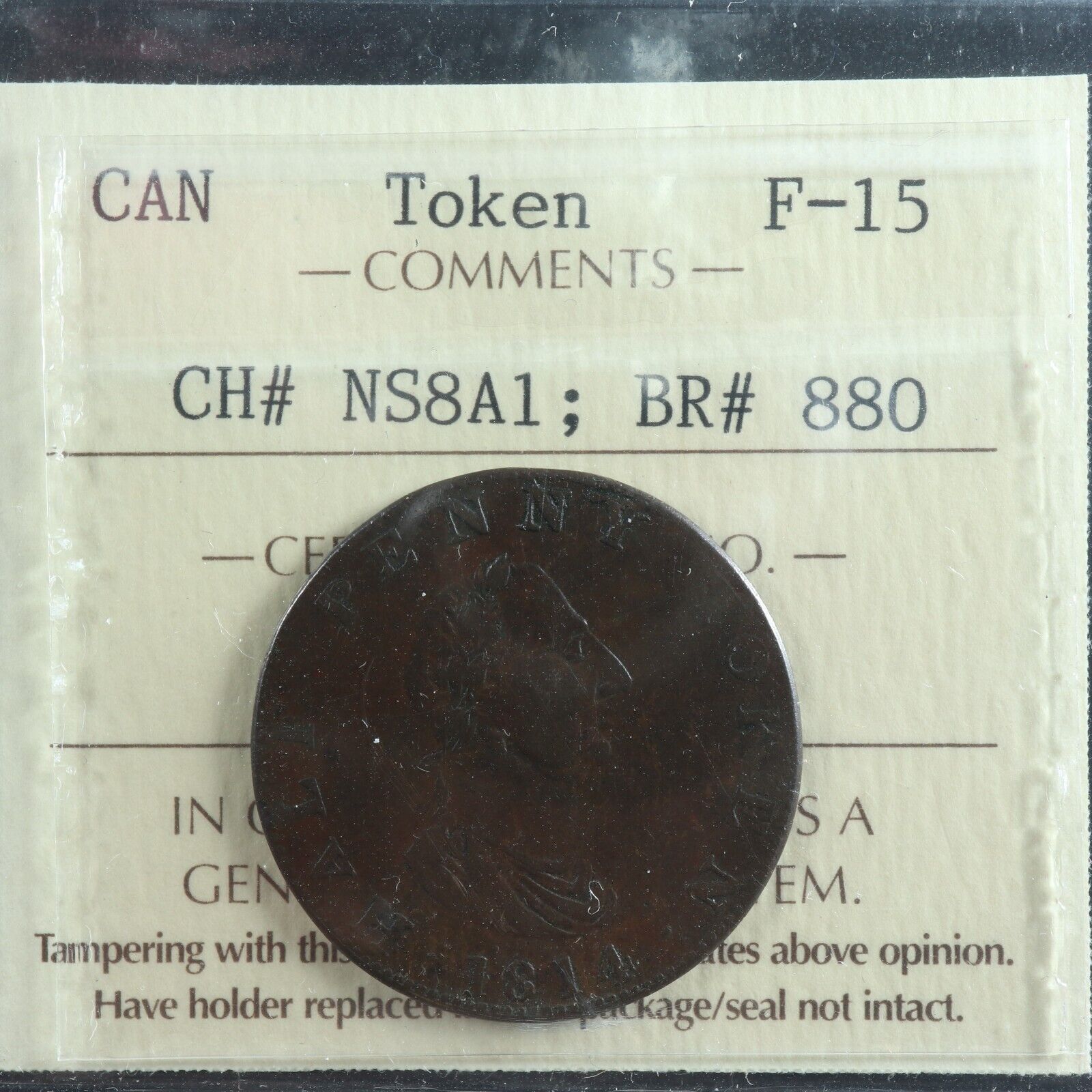 NS-8A1 ICCS F-15 Halfpenny 1814 token Nova Scotia Canada Ship Breton 880