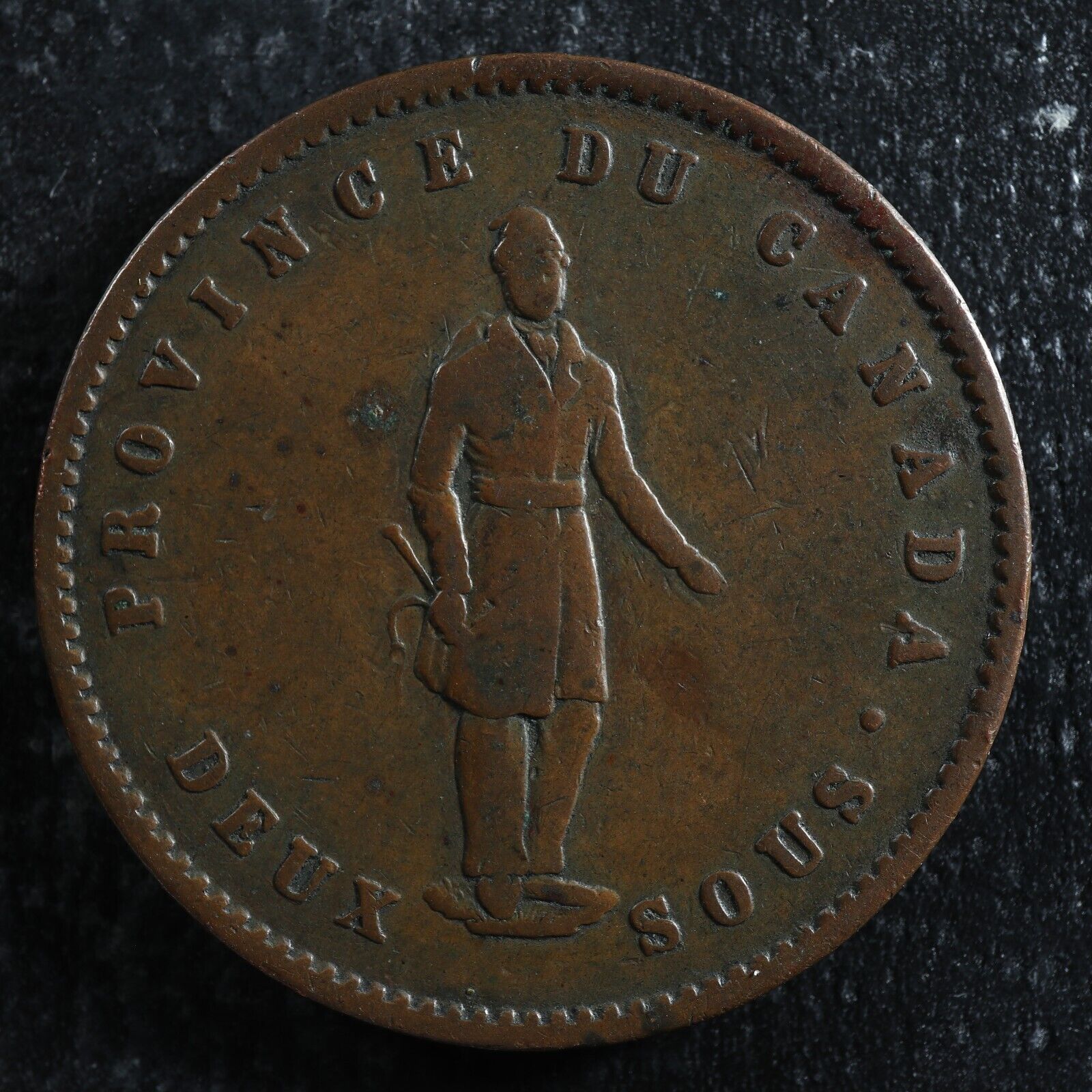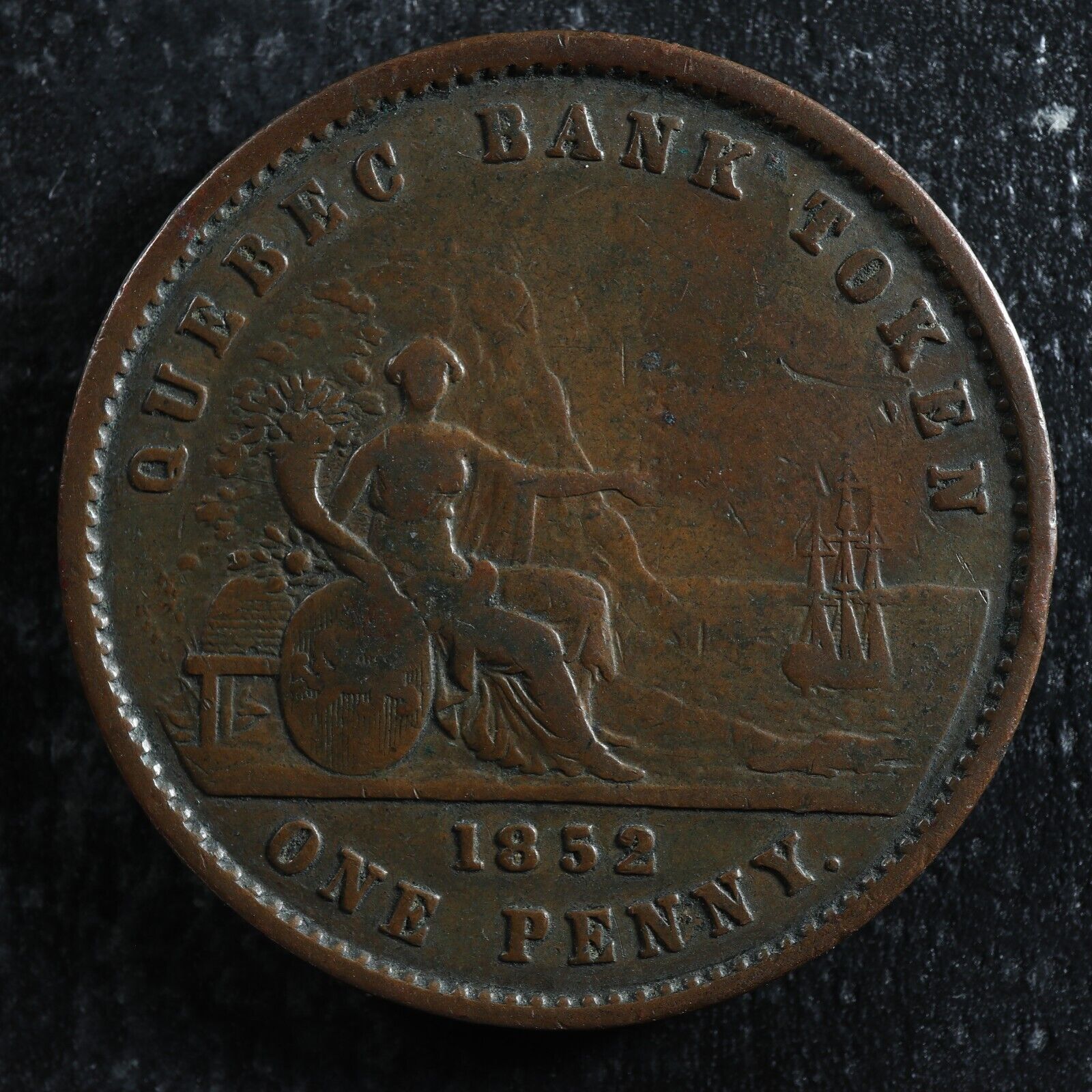 PC-4 One Penny token Deux sous 1852 Province of du Canada Quebec Bank Breton 528