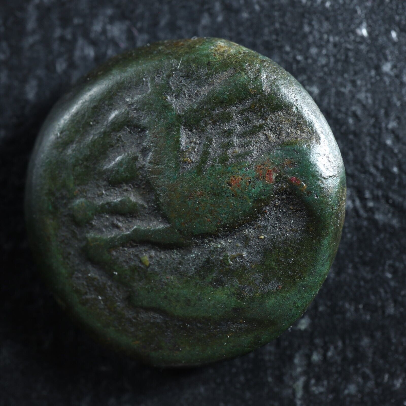 Rev.: Horse prancing left, trailing rein.