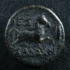 Rev: ΘEΣ ΣAΛΩN, bridled horse trotting right, grain ear to right.