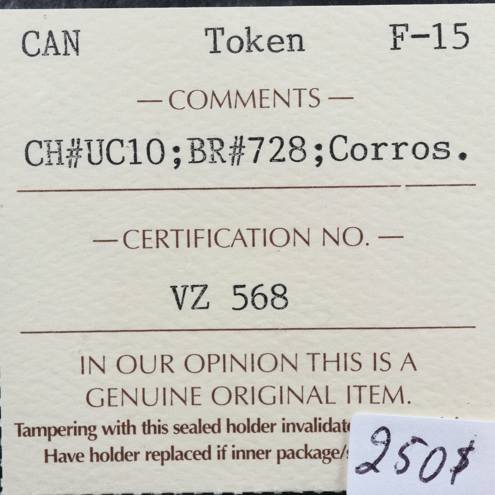 UC-10 ICCS F-15 Corrosion Halfpenny token 1821 Upper Canada ship Breton 728