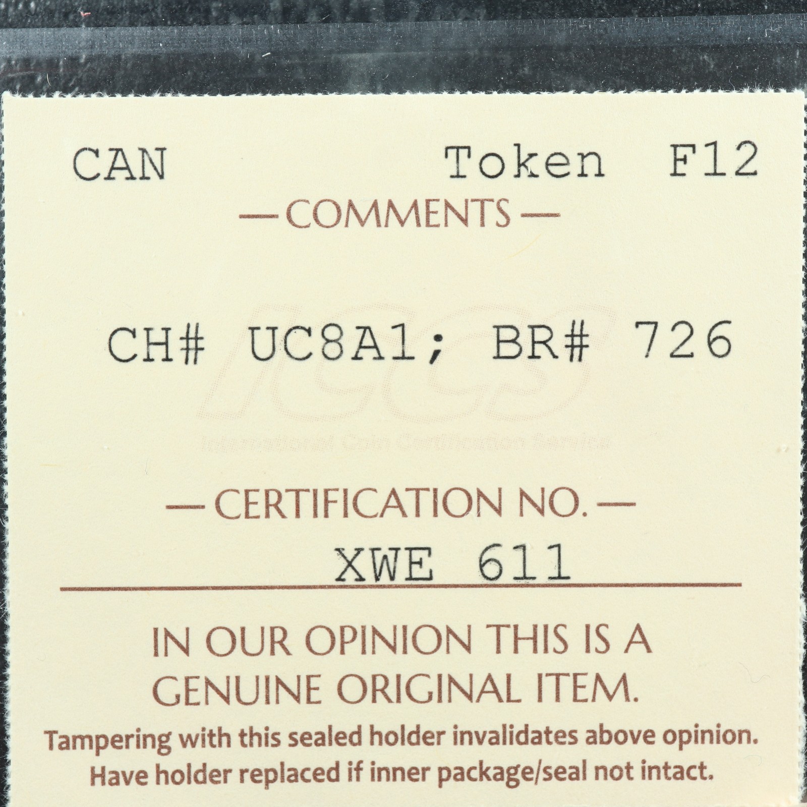 UC-8A1 ICCS F-12 Mule Halfpenny token 1815 Upper Canada ship Breton 726 quantity