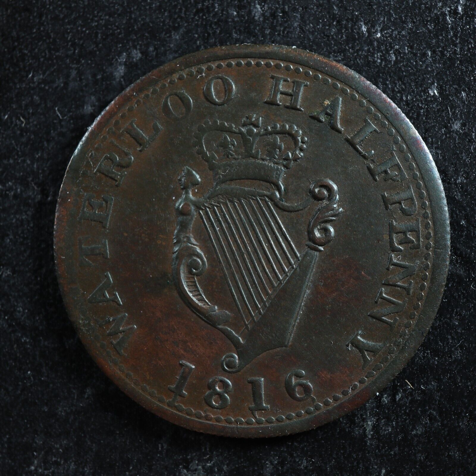 WE-10A1 Halfpenny 1816 token Wellington Waterloo Canada Harp Breton 981