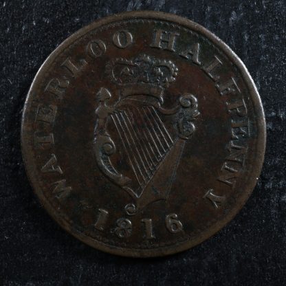 WE-10A1 Halfpenny 1816 token Wellington Waterloo Canada Harp Breton 981